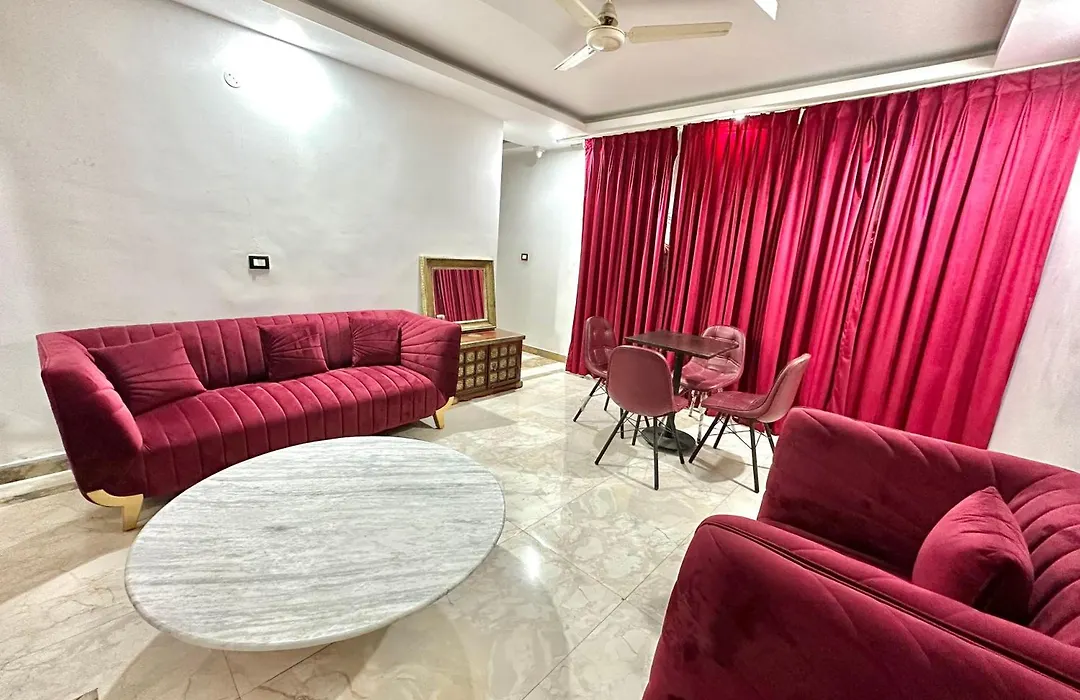 Staying at Private Floor With Hall And 5 Rooms For Parties Gurgaon, guests can relax on a terrace 10 minutes' drive from the multi-purpose sports complex "Tau Devi Lal Stadium". Wi-Fi and free private parking are also available at this apartment.